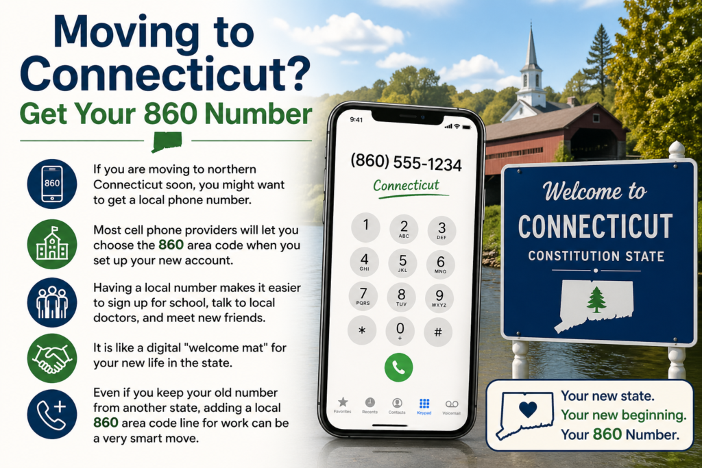 If you are moving to northern Connecticut soon, you might want to get a local phone number. Most cell phone providers will let you choose the 860 area code when you set up your new account. Having a local number makes it easier to sign up for school, talk to local doctors, and meet new friends. It is like a digital “welcome mat” for your new life in the state. Even if you keep your old number from another state, adding a local 860 area code line for work can be a very smart move.